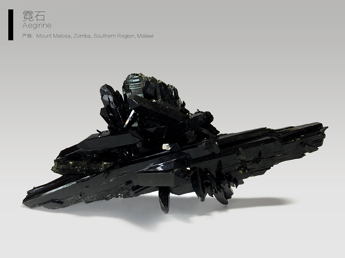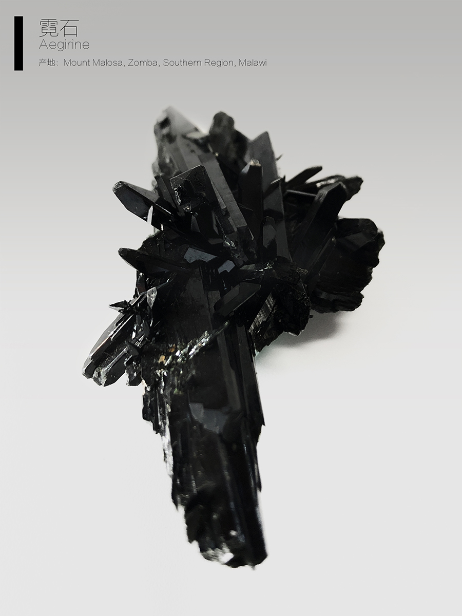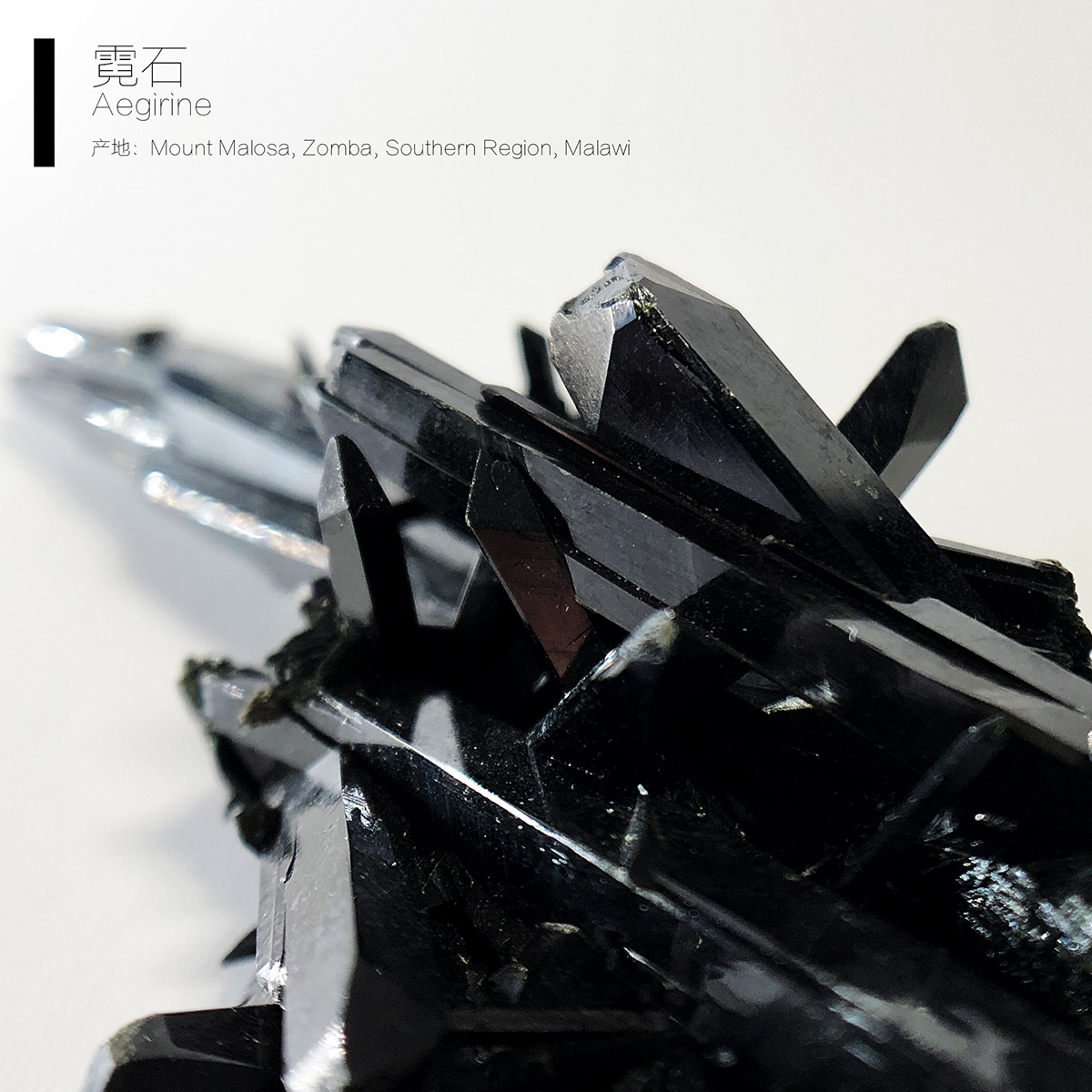 霓石(Aegirine),是钠和铁的单链硅酸盐,辉石族家族的一员,同时也常见于各种铁镁质岩浆岩,足迹遍布世界各地。霓石属于单斜晶系,晶体常呈柱状/针状,晶体表面有特有的纵形条纹,但端面常受侵蚀。品质最好的霓石都出自马拉维的Mt Malosa——正如我这块一样。