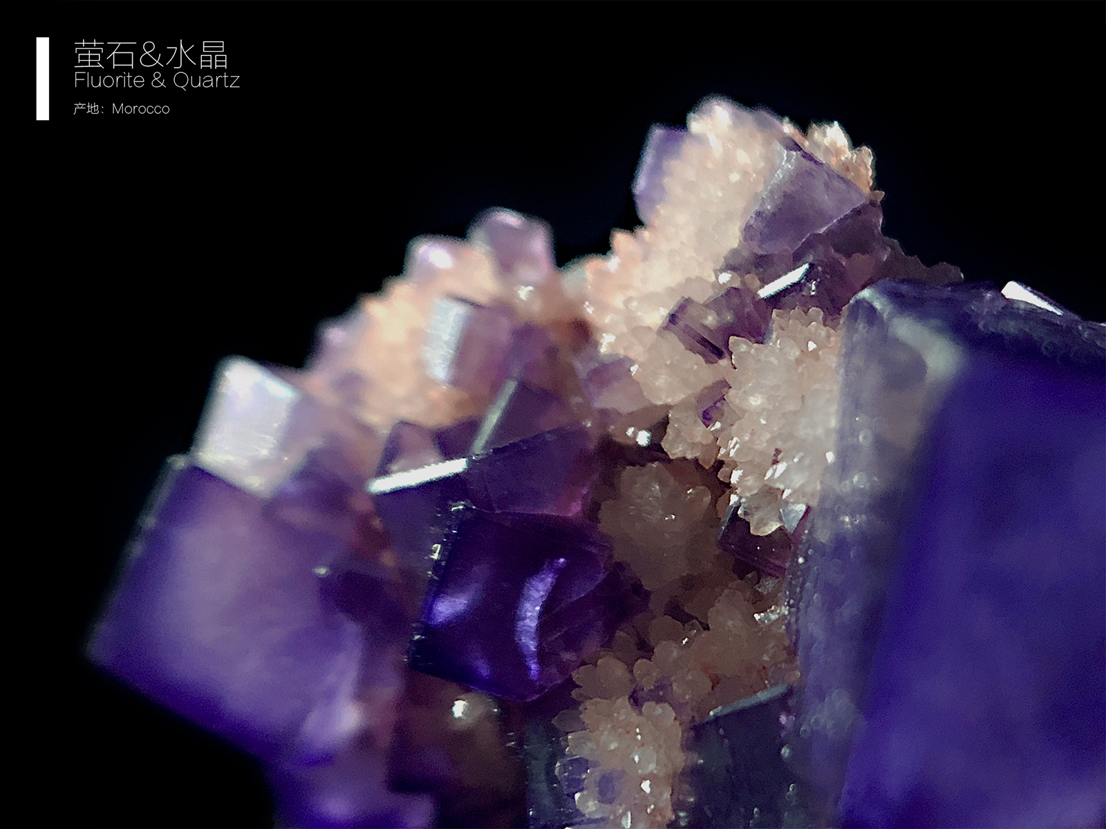 还是18年刚入矿坑没多久时入的一个小矿标,店家表示只知道来自摩洛哥但并不清楚具体产地,后来自己会用mindat后根据产状和产地分布信息图找到了相同产状的萤石。(所以产地只是个推测)