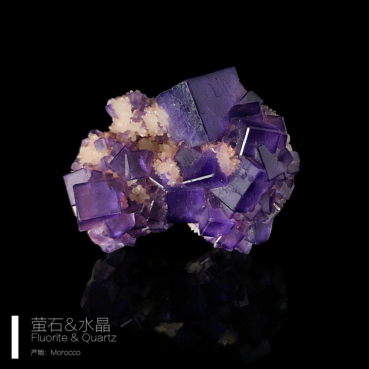 这种粉色迷你水晶晶簇+紫色立方体萤石的组合真的深得我心,后来也买了很多萤石但都没有这一块给我的组合来的印象深刻。